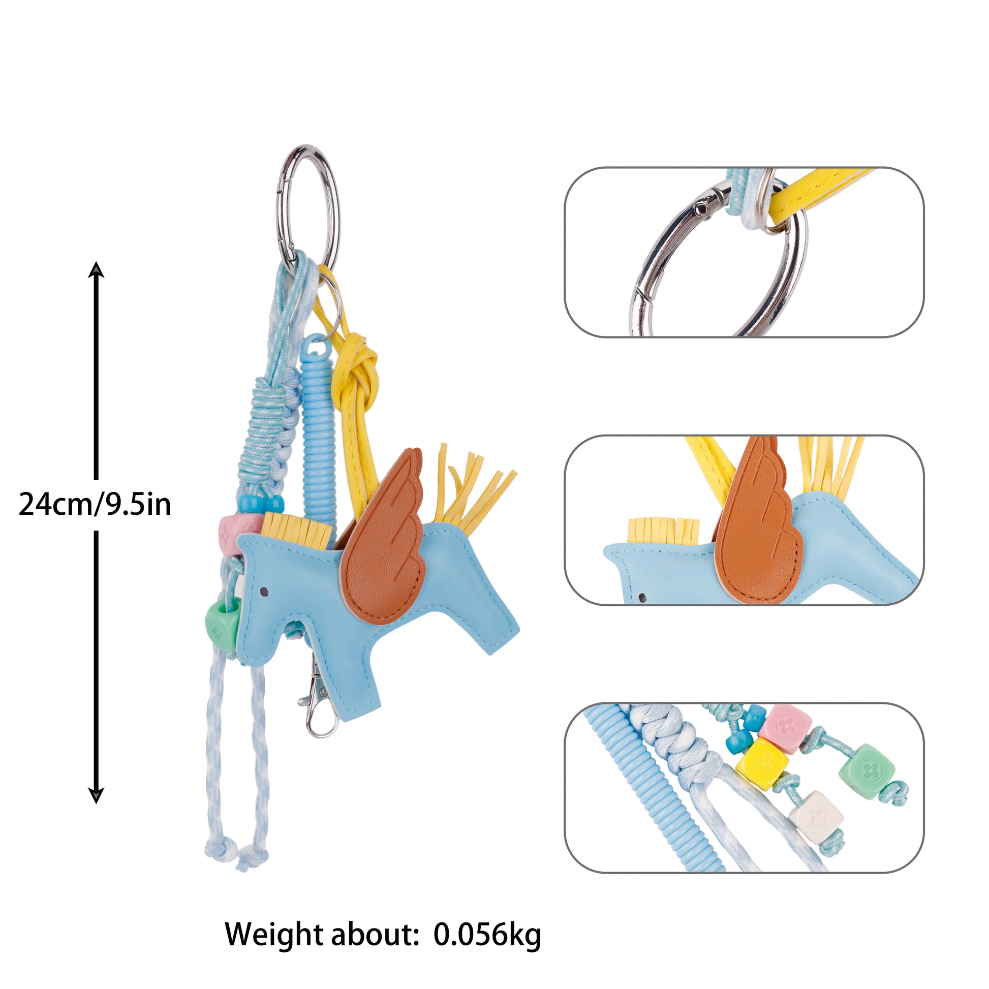 Charming & Unique Design: Featuring an adorable Cartoon Pegasus/winged horse design and vibrant rope/bead detailing, this keychain adds a touch of Cute and playful style to any bag or set of keys.